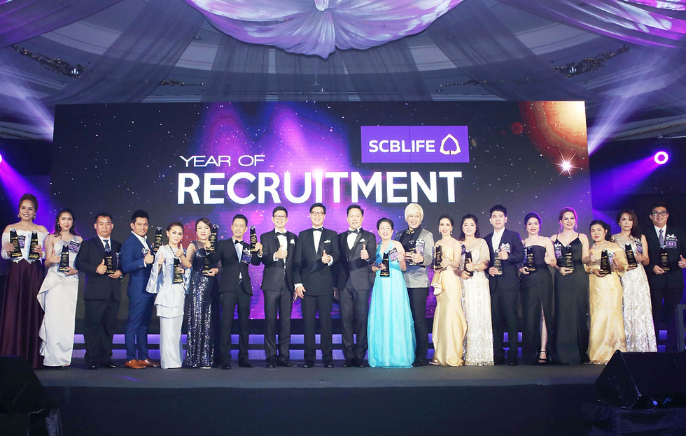 เมื่อเร็วๆ นี้ บริษัท ไทยพาณิชย์ประกันชีวิต จำกัด (มหาชน) หรือ SCBLIFE โดยนายอนุชา เหล่าขวัญสถิตย์ รองประธานกรรมการ (ลำดับที่ 9 จากซ้าย) นายเสถียร เลี้ยววาริณ กรรมการผู้จัดการใหญ่ (ลำดับที่ 8 จากซ้าย) ให้เกียรติร่วมเป็นประธานในพิธีมอบรางวัลเกียรติยศฝ่ายขายยอดเยี่ยมประจำปี Annual Awards 2018 จัดขึ้นภายใต้ธีม “ปีแห่งการสรรหา Year of Recruitment” เพื่อฉลองชัยแห่งความสำเร็จ และมอบรางวัลเชิดชูเกียรติให้แก่ตัวแทนฝ่ายขายที่ทุ่มเท และมุ่งมั่นสร้างผลงานคุณภาพยอดเยี่ยมตลอดปีที่ผ่านมา ณ โรงแรมรามาการ์เด้นท์ ถ.วิภาวดี กรุงเทพฯ
